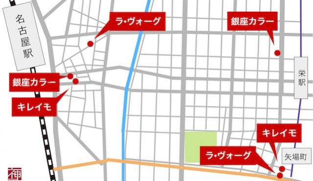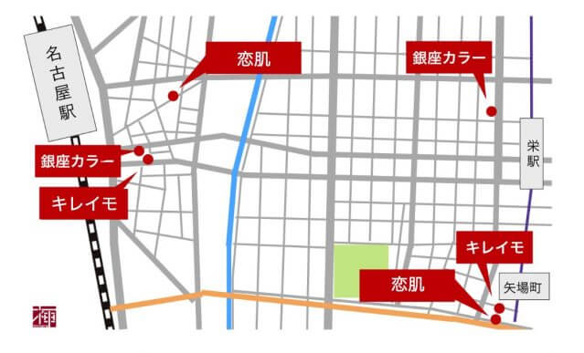 また、繁華街として知られる栄付近にも多くのサロンが展開されており、系列店が同じエリアにあることで、予約が取りやすく通いやすい体勢が整っているのもポイントです。