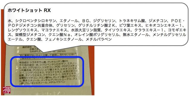 実際、筆者はホワイトショットRXSを肌につけるとかゆくなってしまったので、使う人によっては多少の刺激が考えられます。