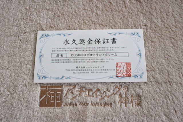 クリアネオが到着し、箱を開けてみると、永久返金保証書もちゃんとあって安心ですね。