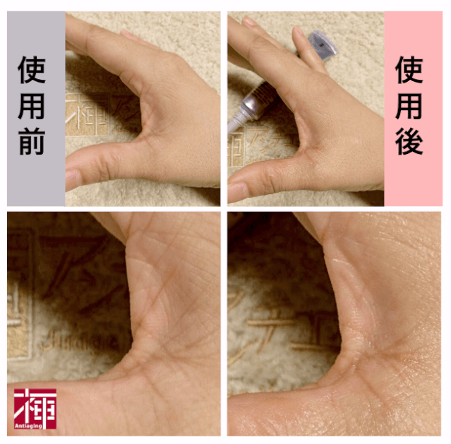 肌の中に浸透する感じがわかります。つけた時やジワーッと暖かい感じがして気持ちいいです。おでこの横じわに念入りに塗っていたら弾力が出てきました。