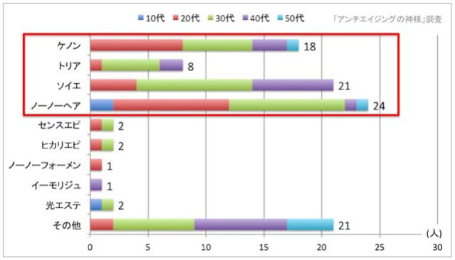 ・ケノンは20〜30代の利用者が多く、光エステ、トリアは20〜40代まで幅広い