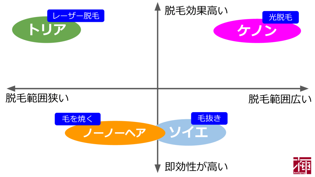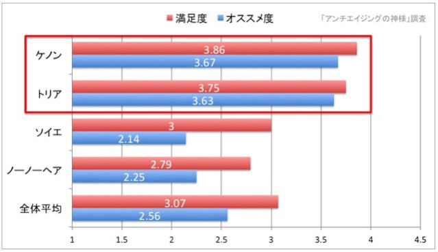 ・ケノンとトリアの脱毛効果の満足度が高い