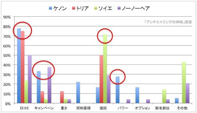 ・ケノンが満足度合わせて人気トップ、次いでパナソニックの光エステ、トリアの3機種で全体の7割を占める