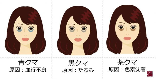 クマには3つの種類があり、それぞれ原因が異なります。まずは自身の「くま」が、「青ぐま」「茶ぐま」「黒ぐま(たるみクマ)」のどのタイプかをまず把握しましょう。
